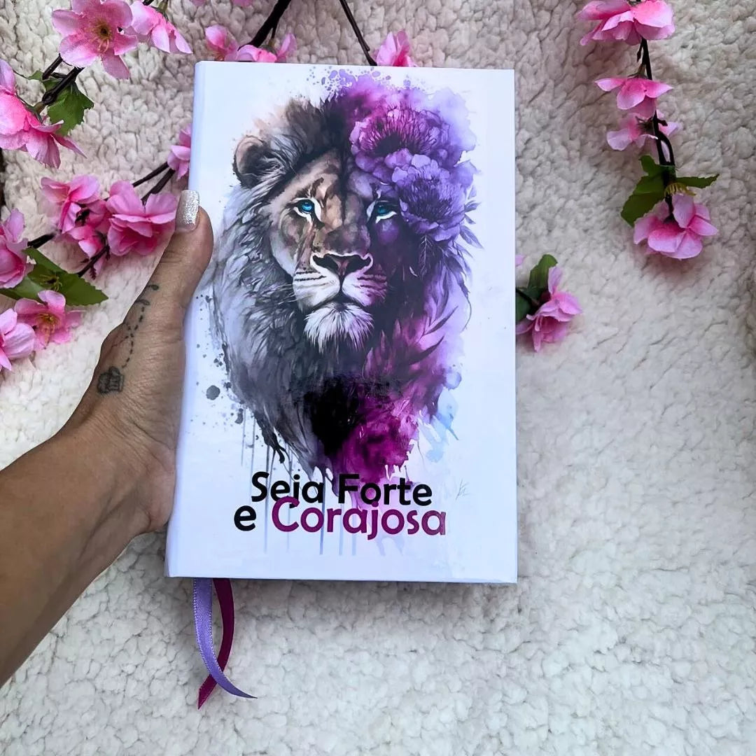 🦁 Capa dura com leão gravado, elegante e resistente