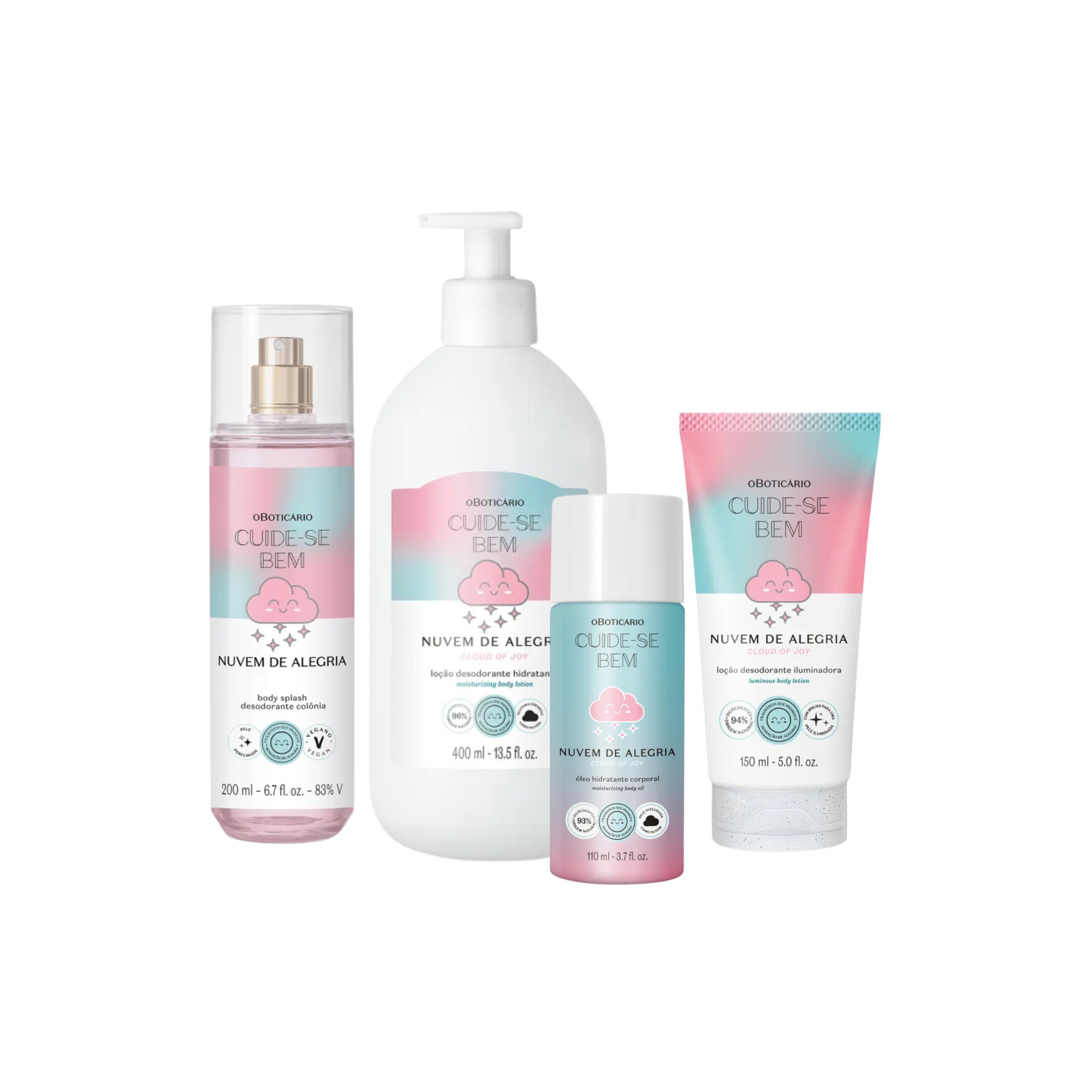 Sinta a energia e leveza da linha Cuide-se Bem Nuvem de Alegria e transforme seu ritual de cuidado diário em um momento de felicidade e bem-estar.