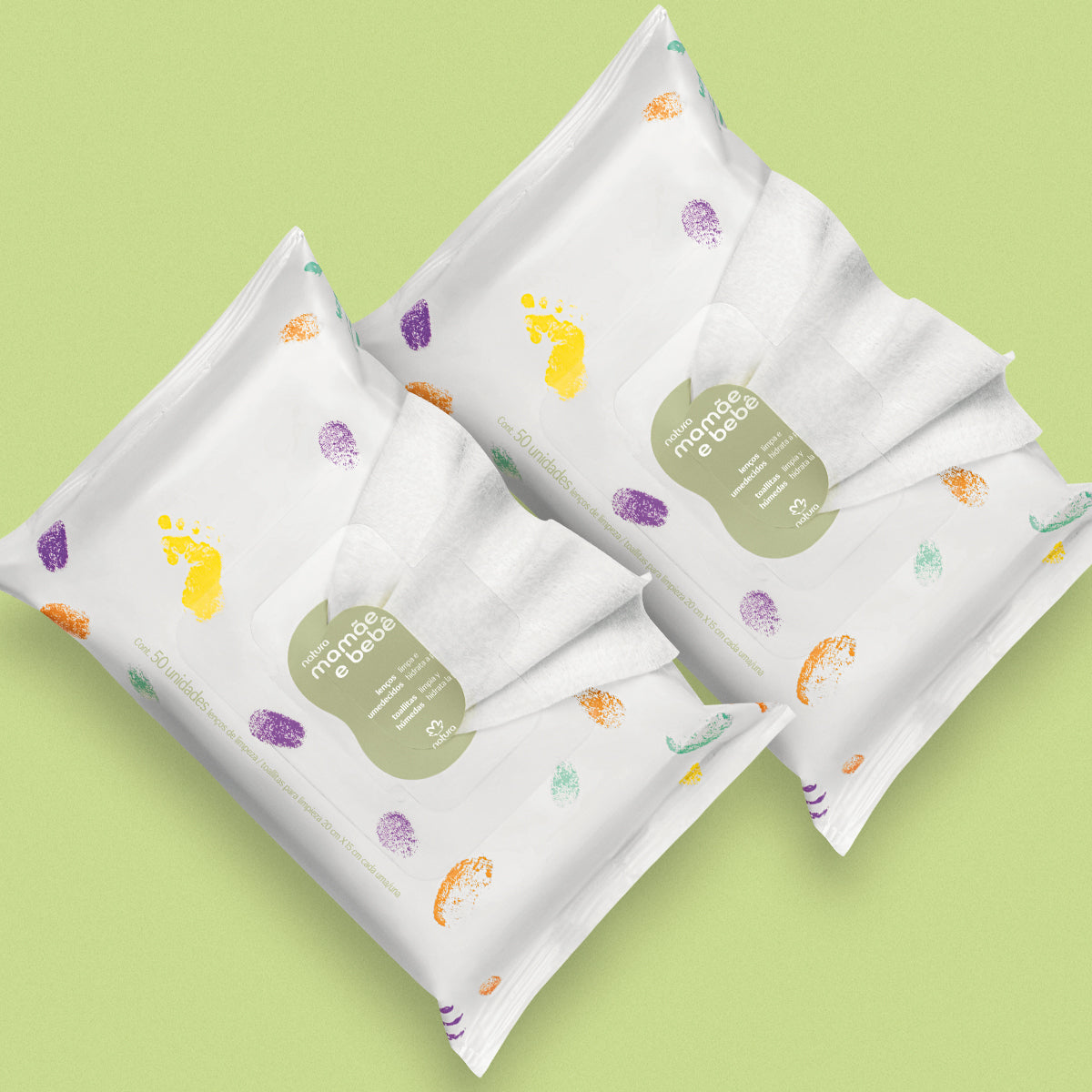 Os Lenços Umedecidos com Fragrância Mamãe e Bebê foram desenvolvidos especialmente para cuidar da pele delicada dos pequenos, desde o nascimento. Com fórmula hipoalergênica e vegana, proporcionam uma higiene eficiente com o máximo de carinho.
