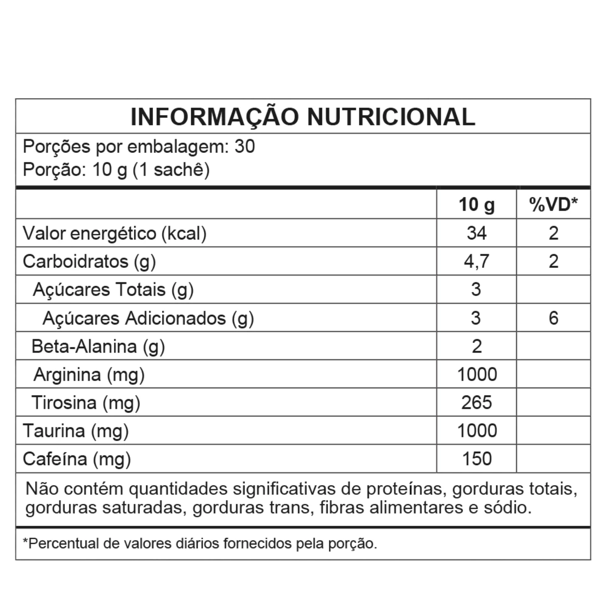 💊 Fórmula com Beta-Alanina, Taurina, L-Arginina, L-Tirosina e Cafeína