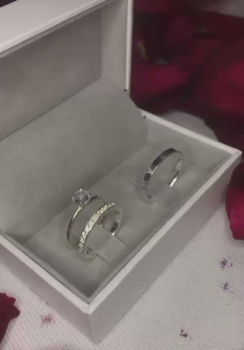 β¨ Sterling Silver Couple Rings β 2mm Fine Design with Zirconia Stones